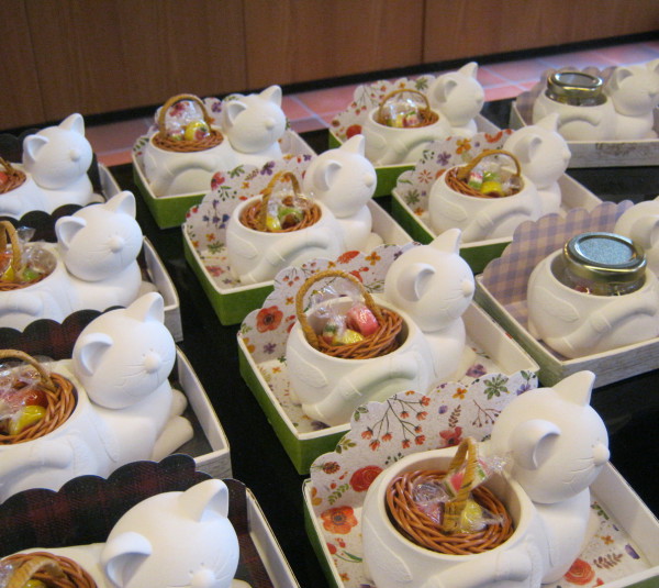 Als Eisbär wird die natürliche Farbe der weißen Keramikgießmasse belassen und z. B. ein bunter Badeanzug oder eine Badehose aufgemalt.