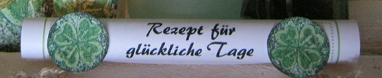 Anschließend auf jedes Band 1 kleines Glückskleeblatt mit etwas Klebstoff anbringen.