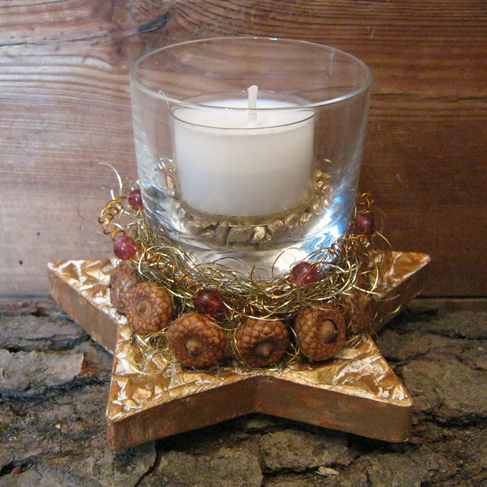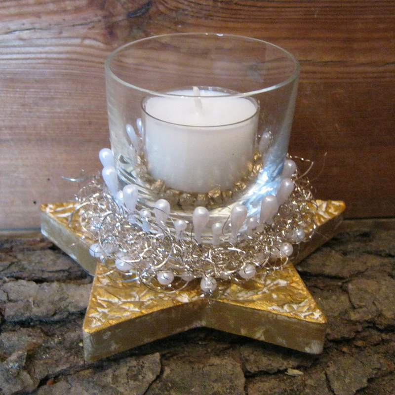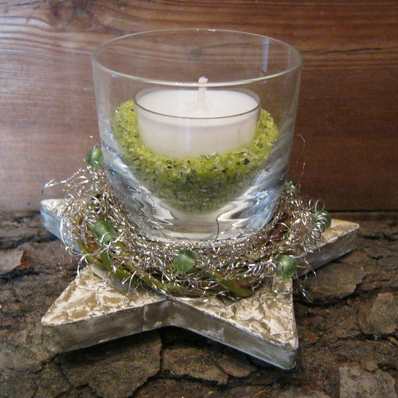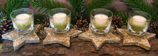 Sterne als Untersetzer für verzierte Teelichtgläser