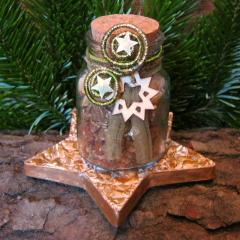 Sterne als Untersetzer für ein Glas Honig oder ein gefülltes Fläschchen mit Korkdeckel